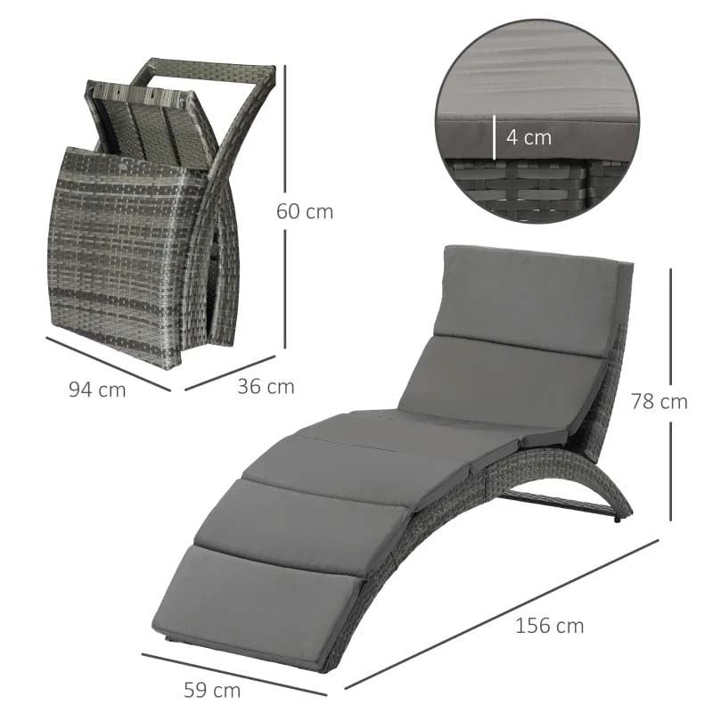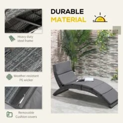 Outsunny Rattan Sun Lounger – Grey – 862-059V70GY