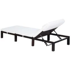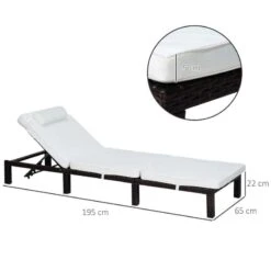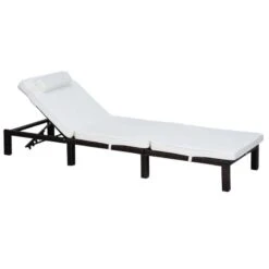 Outsunny Reclining Rattan Sun Lounger With Pillow – Cream – 01-0785