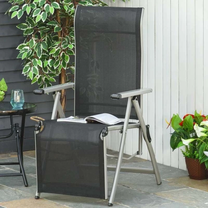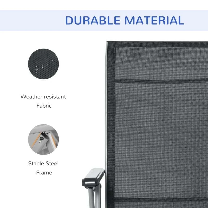 Check out this stunning Outsunny garden sun lounger chair that we can be sure will compliment your outdoor living space perfectly. Constructed from a powder coated metal frame, this sun lounger is strong, durable and will last for years to come. Covered in washable PCV sling fabric that allows air to circulate and keeps you cool on warm summer days, it is also easily cleaned with a damp cloth. Sit up to read a book or recline the back and footrests to convert into a lounger for sunbathing in the comfort of your own garden, the high armrests will also make you feel fully supported. The folding design allows you to manoeuvre to your preferred position and can be packed away neatly when not in use. If you are looking for a beautifully designed sun lounger chair, this is the one for you.