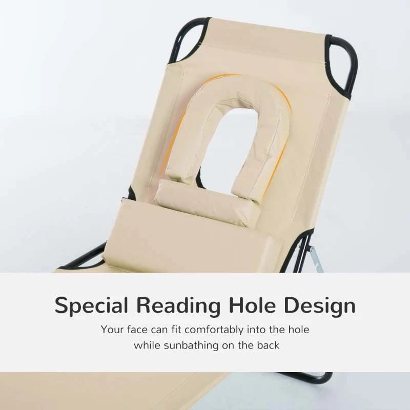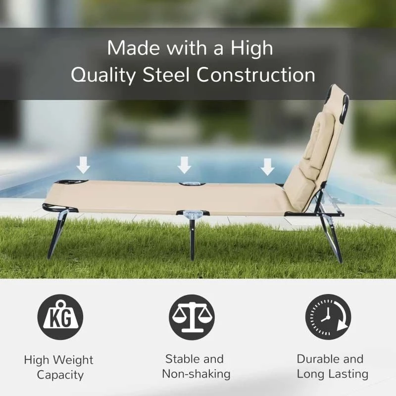 Outsunny Reclining Sun Lounger With Pillow – Beige – 84B-002BG
