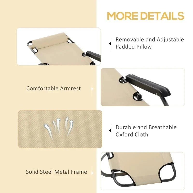 Outsunny Reclining Sun Lounger With Pillow – Beige – 84B-043