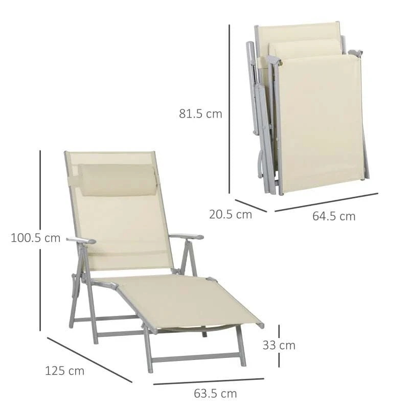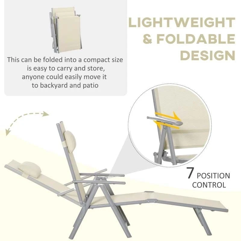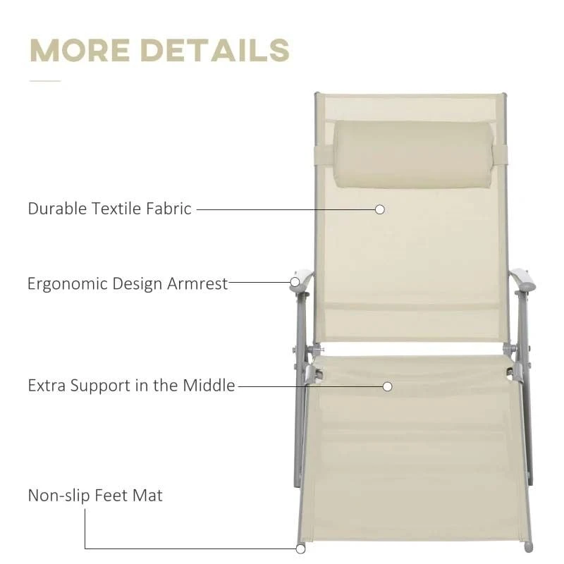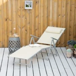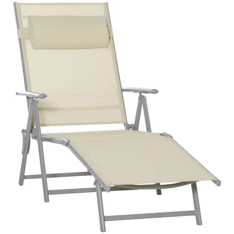 Outsunny Reclining Sun Lounger With Pillow – Beige – 84B-184V02BG