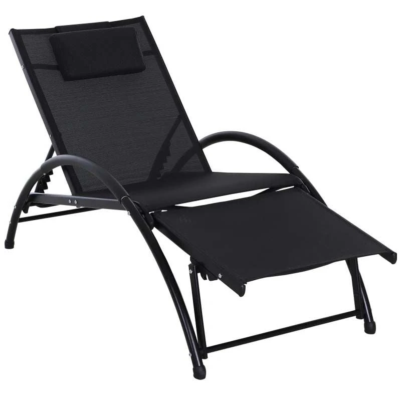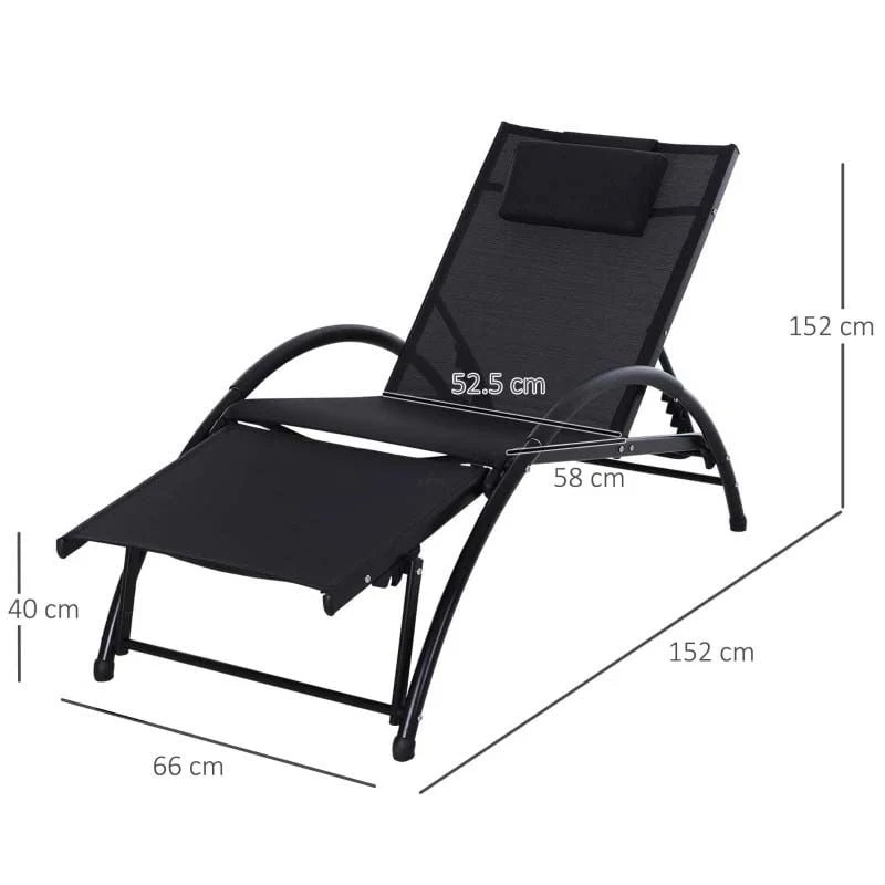 Check out this stunning Outsunny garden sun lounger that we can be sure will compliment your outdoor living space perfectly. Constructed from a powder coated metal frame and curved arm rests, this sun lounger is strong, durable and will last for years to come. Covered in washable PCV sling fabric that allows air to circulate and keeps you cool on warm summer days, it is also easily cleaned with a damp cloth. Sit up to read a book or recline the back and footrest to convert into a flat lounger for sunbathing in the comfort of your own garden, the added head rest pillow will keep you supported and comfortable. This sun lounger is also lightweight which allows you to easily manoeuvre to your preferred position of your garden. If you are looking for a beautifully designed sun lounger, this is the one for you.