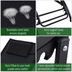 - Breathable texteline sling seat comfortably holds your body all day long