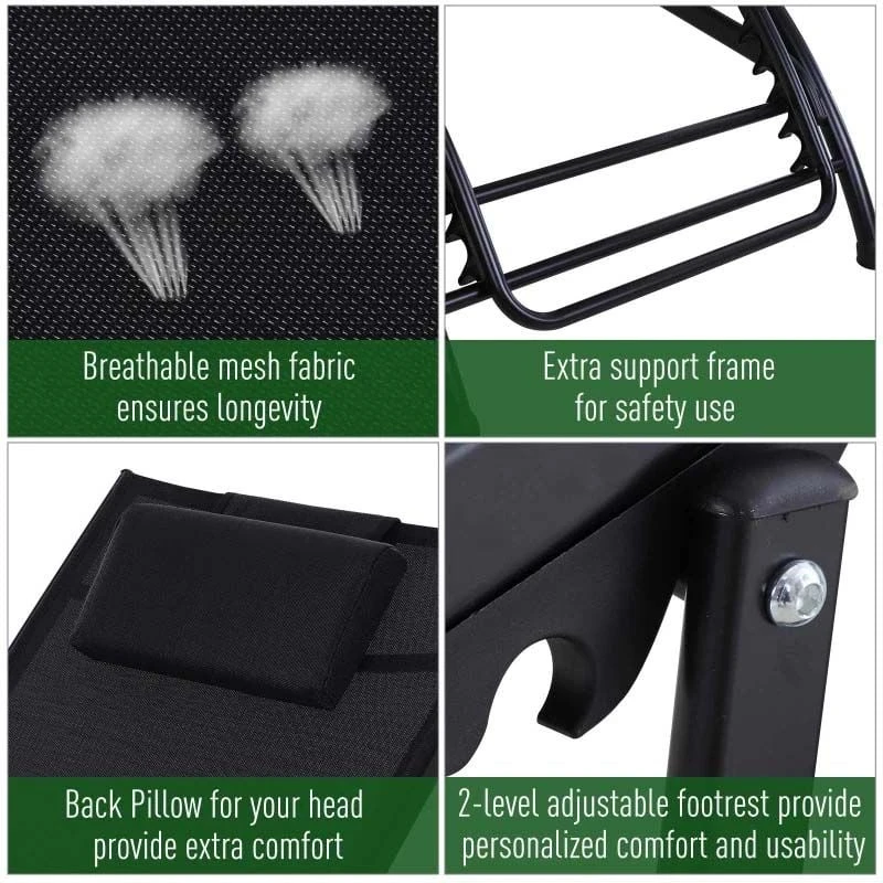 Outsunny Reclining Sun Lounger With Pillow – Black – 84B-447V70BK