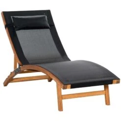 Outsunny Reclining Sun Lounger With Pillow – Black – 84B-912V70BK