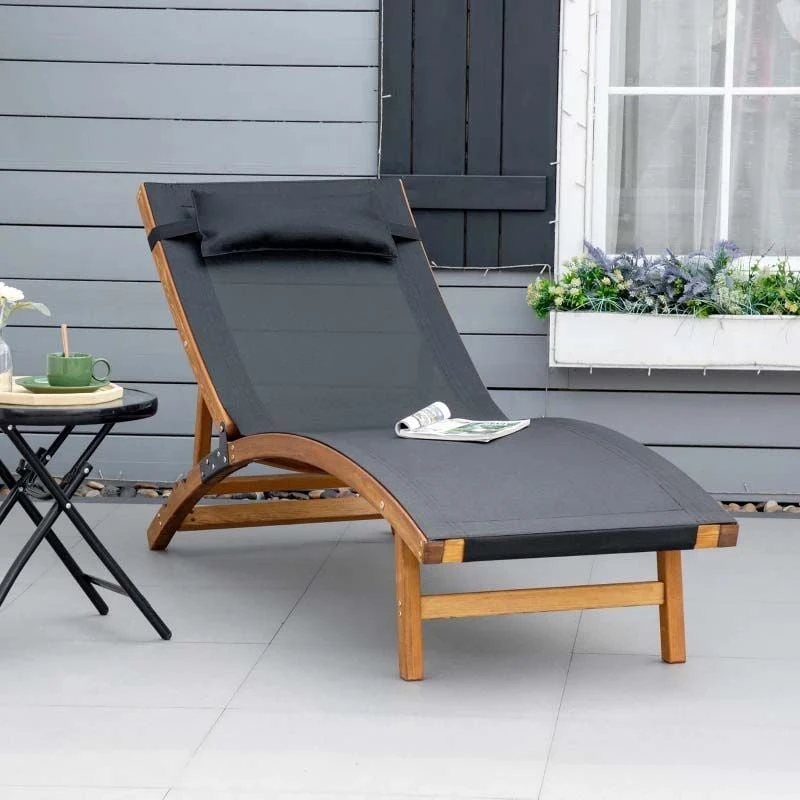 Check out this stunning Outsunny garden sun lounger that we can be sure will compliment your outdoor living space perfectly. Constructed from a high-quality wooden frame, this sun lounger is strong, durable and will last for years to come. Covered in washable PCV sling fabric that allows air to circulate and keeps you cool on warm summer days, it is also easily cleaned with a damp cloth. Sit up to read a book or recline the back over 3 levels to sunbathe in the comfort of your own garden, the added head rest pillow will keep you supported for hours on end. This sun lounger is also lightweight which allows you to easily manoeuvre to your preferred position of your garden and can be folded for easy storage when not in use. If you are looking for a beautifully designed sun lounger, this is the one for you.