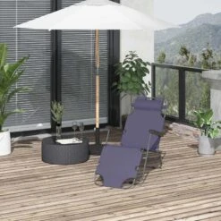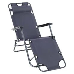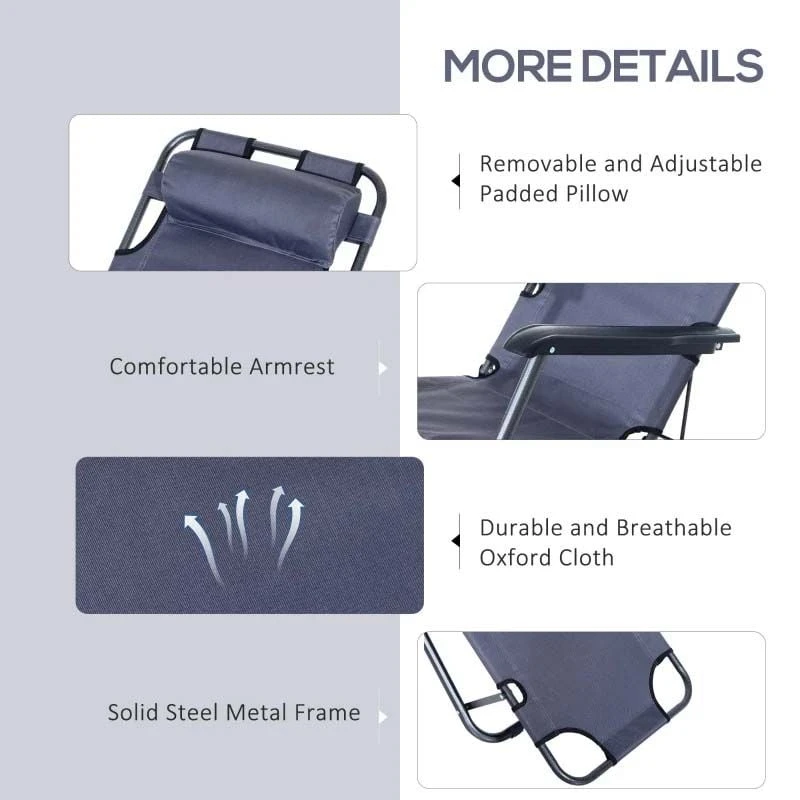 Outsunny Reclining Sun Lounger With Pillow – Grey – 84B-043GY