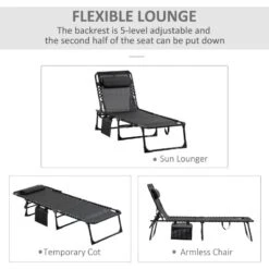 Outsunny Reclining Sun Lounger With Pillow – Grey – 84B-812BK