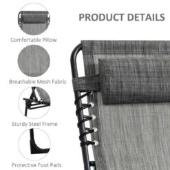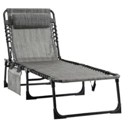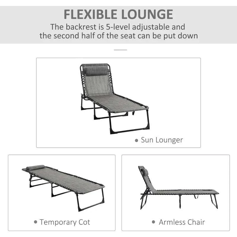 Outsunny Reclining Sun Lounger With Pillow – Grey – 84B-812V70