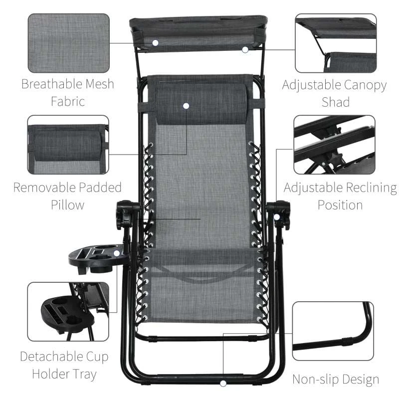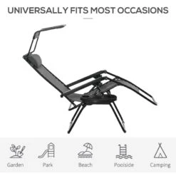 Outsunny Reclining Sun Lounger With Sun Shade – Grey – 84B-388V70LG