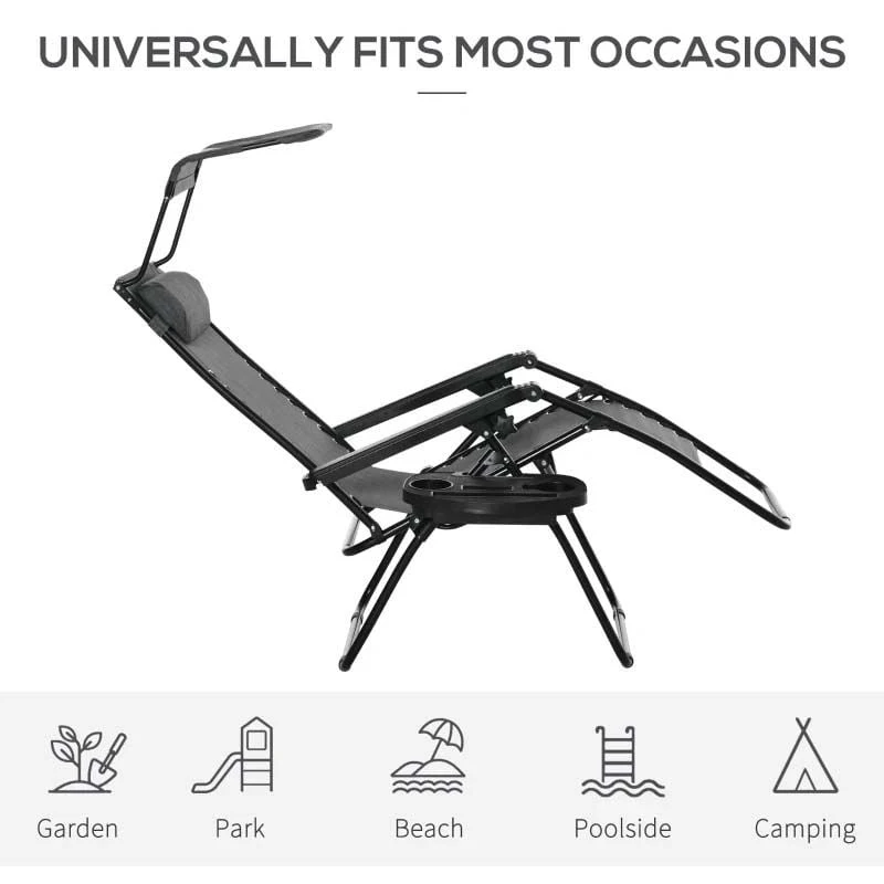 Check out this stunning Outsunny garden sun lounger that we can be sure will compliment your outdoor living space perfectly. Constructed from a powder coated metal frame, plastic arm rests and covered in a sling fabric, the lounger is strong, durable and will last for years to come in the weather elements. The sling fabric circulates air that keeps you cool on warm summer days and can be cleaned with a damp cloth. Sit up to read a book or use the reclining back and footrest function to lay back and relax in the comfort of your own garden for hours on end, complete with the added shade to protect your eyes from the sun and head rest pillow for ultimate support. The handy side table with holes for your drinks, book and phone is ideal for keeping your things close and secure. The folding design allows you to manoeuvre the sun lounger to your preferred position around your garden and is easily packed away when not in use. If you are looking for a beautifully designed sun lounger, this is the one for you.