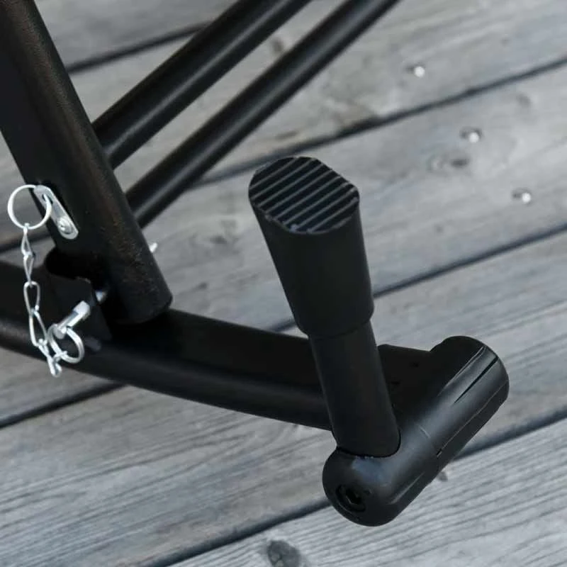 The Zero-Gravity Rocking Chair is great at comfort with its adjustable 10°-35° back angle allowing you to relax in your desired position. The chair is easy to be converted into a sooting rocker with just a flip of the bottom legs. The fabric seat with a removable padded headrest provides support for your neck and head. The canopy at the top offers shade from those UV rays on brighter days. The powder-coated steel frame makes it tough to withstand most weather conditions. A handy tray on the side holds your drinks, phone, or books and it is also removable in case you don’t need it. A double bungee support system with a safe load-bearing triangle provides stability. The chair’s compact design makes it easy to store or carry.