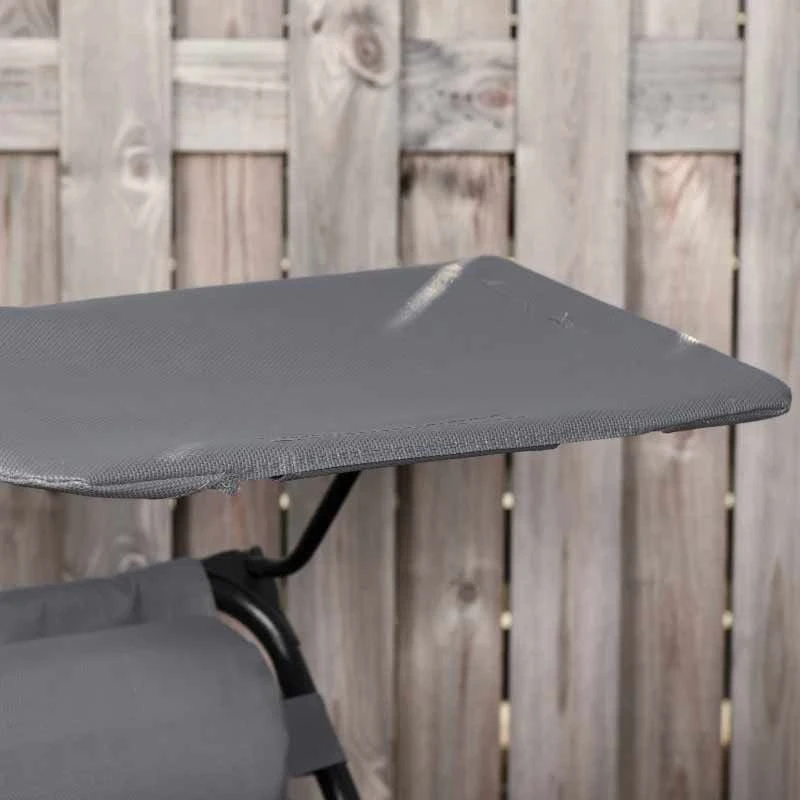 The Zero-Gravity Rocking Chair is great at comfort with its adjustable 10°-35° back angle allowing you to relax in your desired position. The chair is easy to be converted into a sooting rocker with just a flip of the bottom legs. The fabric seat with a removable padded headrest provides support for your neck and head. The canopy at the top offers shade from those UV rays on brighter days. The powder-coated steel frame makes it tough to withstand most weather conditions. A handy tray on the side holds your drinks, phone, or books and it is also removable in case you don’t need it. A double bungee support system with a safe load-bearing triangle provides stability. The chair’s compact design makes it easy to store or carry.