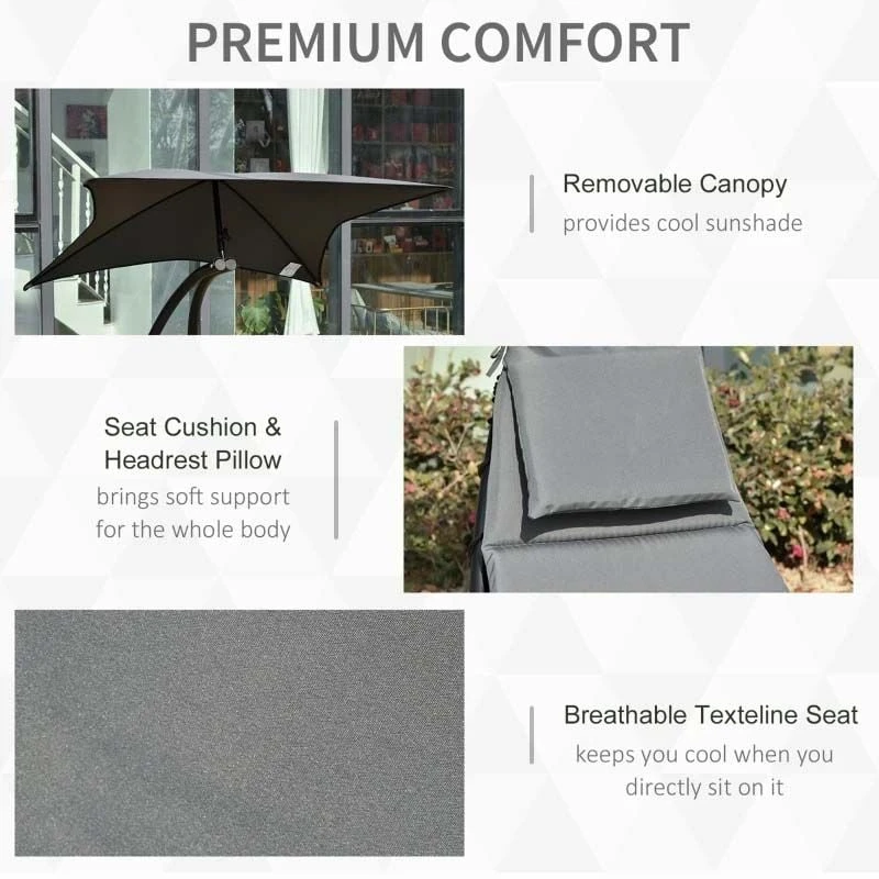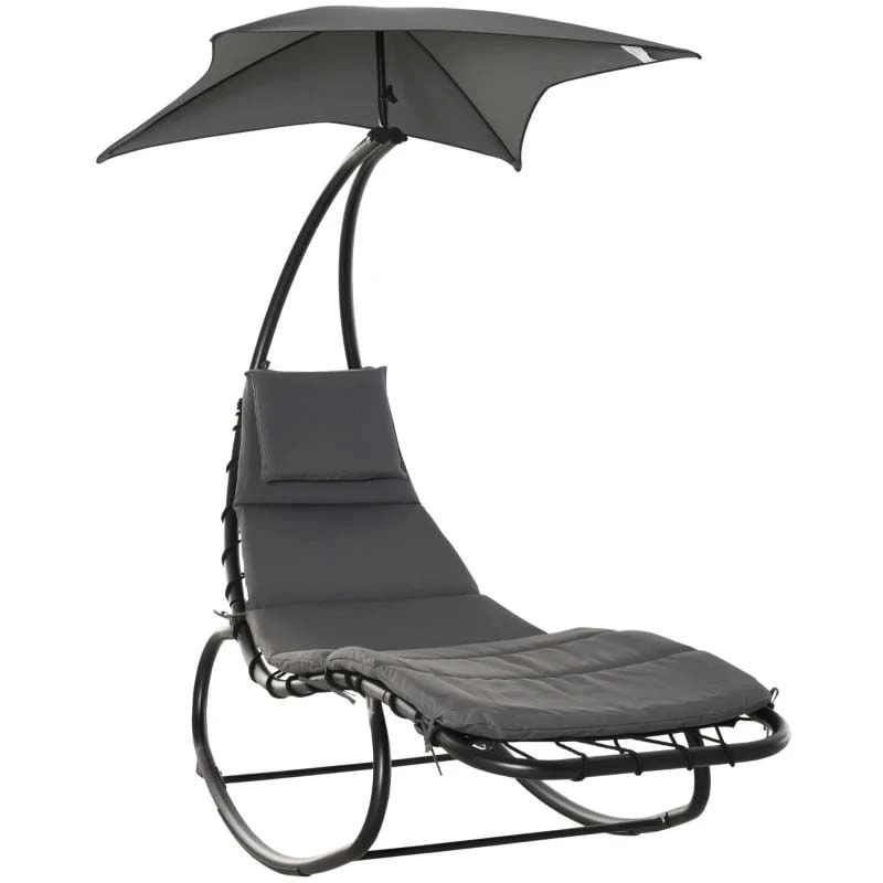 Outsunny Rocking Sun Lounger With Sun Shade – Grey – 84A-179V70