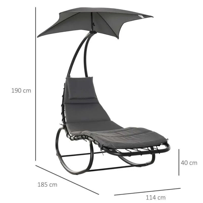 Check out this quirky design Outsunny garden sun lounger complete with a over head umbrella. Constructed from a powder coated metal frame, this sun lounger is strong, durable and will last for years to come. The curved seat contours your body offering ultimate support. The thick cushions and added head rest pillow will keep you comfortable for hours on end. The curved base gently rocks you back and forth to send you into blissful relaxation, the removeable overhead umbrella will keep you protected from the sun allowing you to enjoy your outdoor living space all day long. If you are looking for a unique and modern garden sun lounger, this is the one for you.