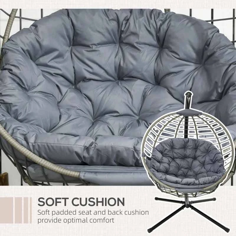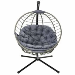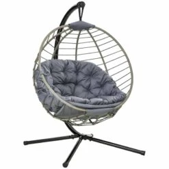 Outsunny Round PE Rattan Hanging Egg Chair – Grey – 84A-265V70GY
