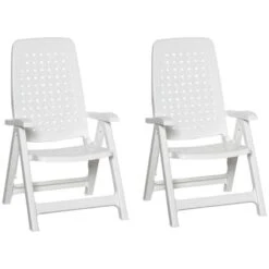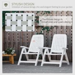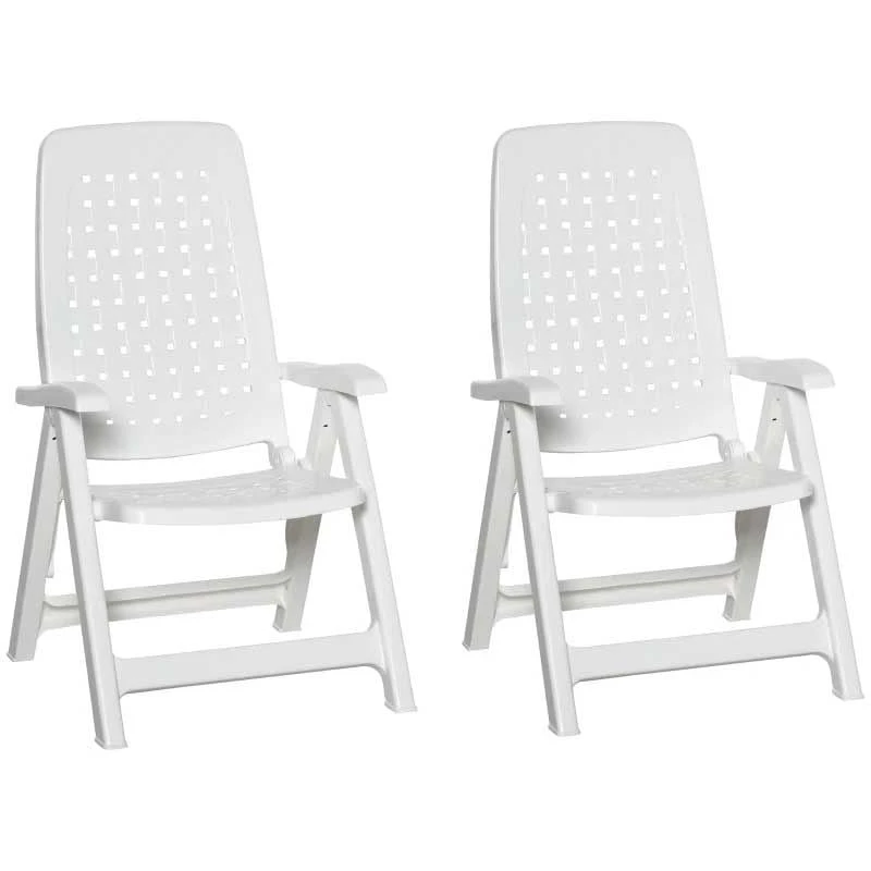 Outsunny Set of 2 4-Position Backrest Folding Chairs – White – 84B-715
