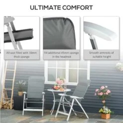 Outsunny Set of 2 Foldable Padded Garden Chairs – Grey – 84B-566V01