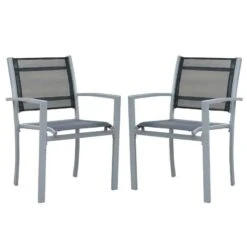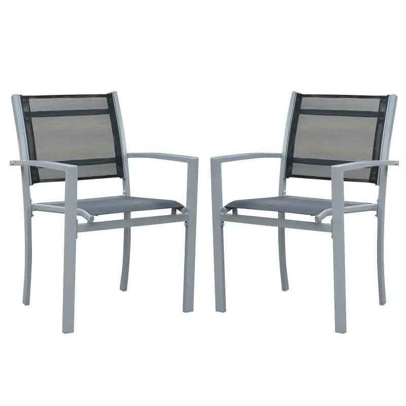Outsunny Set Of 2 Metal Outdoor Garden Chairs – Grey – 84B-293