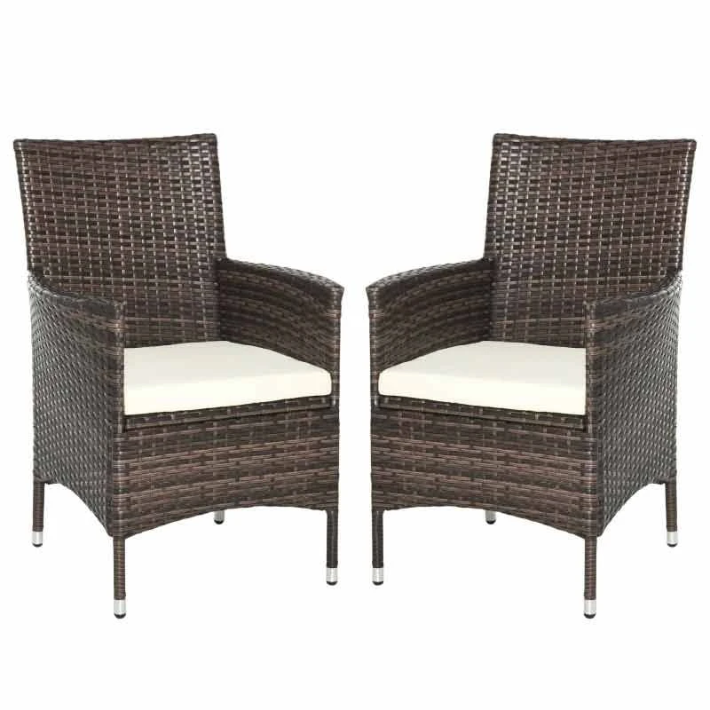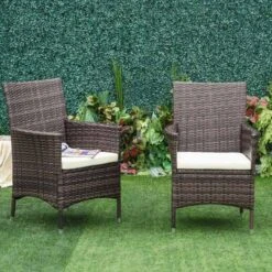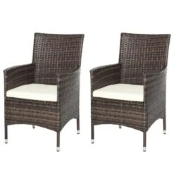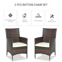 This pair of Outsunny Rattan Garden Chair is a great way to relax this summer with your friend. Crafted out of a galvanized metal frame for a tough and supportive structure. Wrapped with PE rattan offering style and durability. The tall back and armrest with 50mm thick cushions provide extra comfort for hours. The cushion covers are water-resistant and removable for a quick wash. The chairs are easy to clean and maintain for years to come. Anti-slip and rust-resistant aluminum oxide feet provide extra support and protect your floor. These chairs are also suitable for all weather conditions.