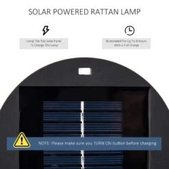 Outsunny Garden Solar Powered Wicker Lantern – Black – 866-066BK