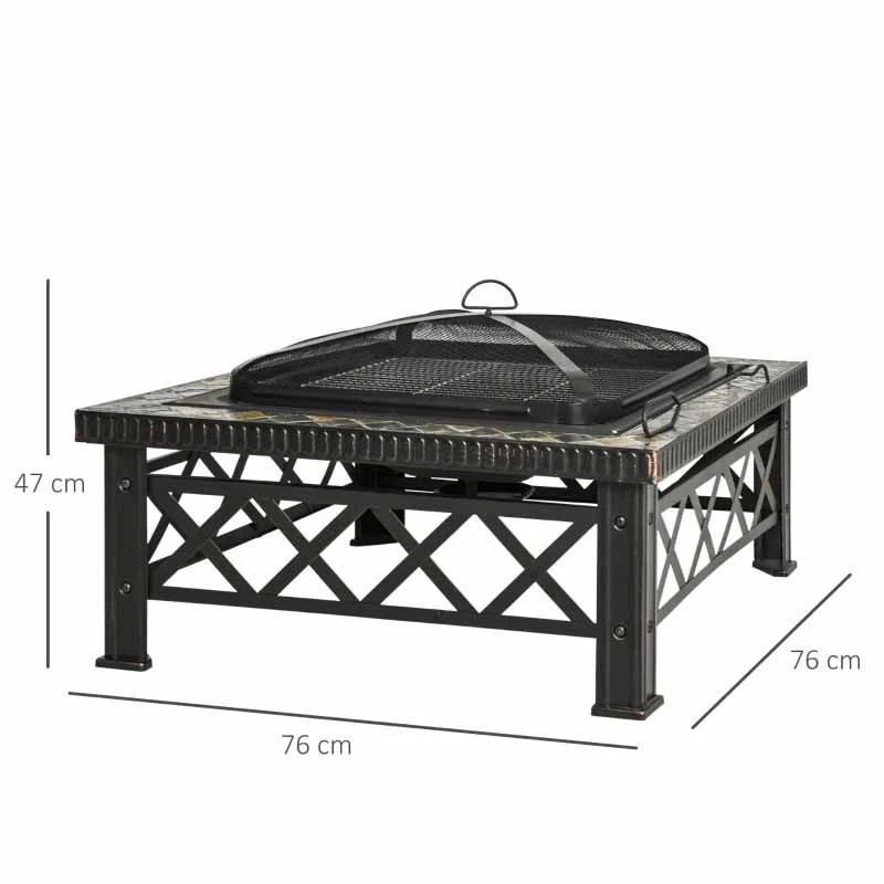 This Outsunny firepit is a stylish addition to your outdoor living. Offers a great place to create a warm fire whilst enjoying BBQ or cooling drinks. It features a bottom pit for holding fire with a cooking grate to hold food. It’s made from tough steel to resist temperatures up to 500℃ and cook food safely and quickly. Comes with a mesh cover and a fire poker. The durable and thoughtful design allows you to enjoy this unit for years. A great compliment to your outdoor living and a perfect piece to have during the cool evenings.