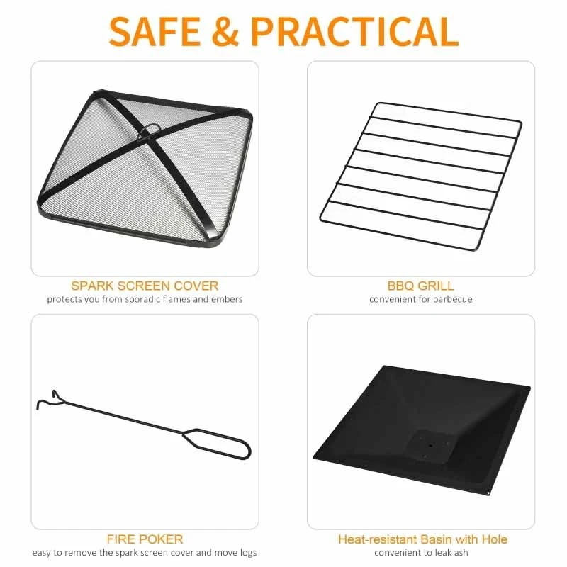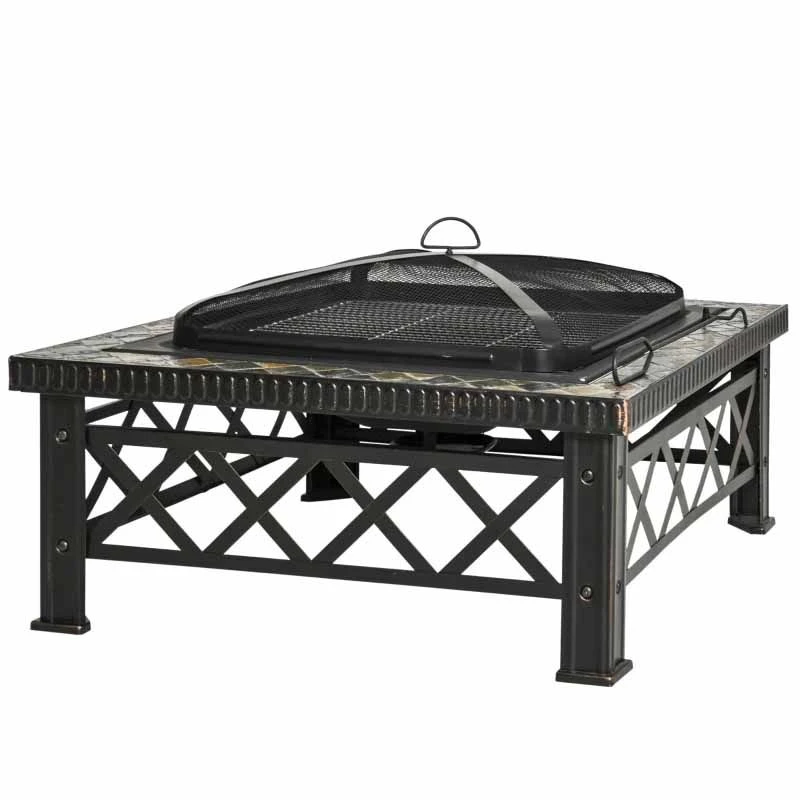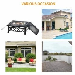 Outsunny Square Garden Fire Pit – Black – 842-170