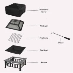 - Safety and waterproof mesh cover encloses the fire for safety as well as preventing debris or sparks flying