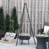 Outsunny Square Metal Fire Pit With Waterproof Cover/Grey – Black – 842-073
