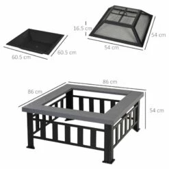 This Outsunny Square Fire Pit is constructed from a metal frame, offering greater durability and stability. The table features a black steel frame and with stylish decorative faux-slate panels around the border. The surface of the fire pit is treated, so it does not cause any damage due to high temperatures. Safety and waterproof mesh cover encloses the fire for safety as well as preventing debris or sparks flying. This Outsunny fire pit is a great choice for backyard, camping, or outdoor garden.