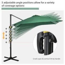 Outsunny Square Parasol with 360° Rotation 245Lx245Wx248Hcm – Green – 84D-051V00GN