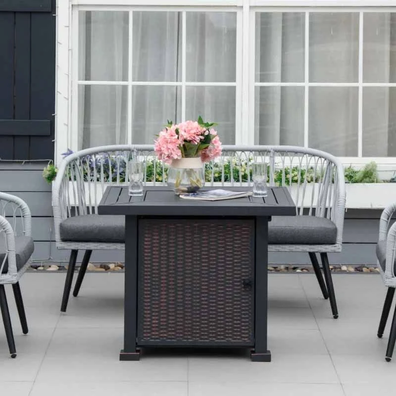 - Classic metal frame with rattan design fire pit, suitable for any outdoor space