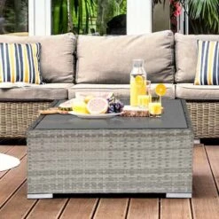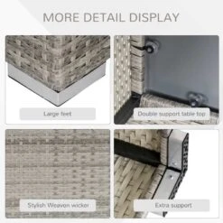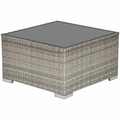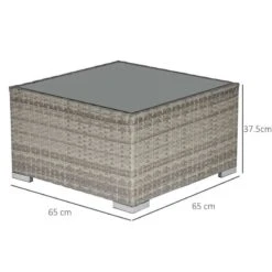 Outsunny Square Rattan Coffee Table with Glass Table Top – 650mm – Light Grey – 867-069GY