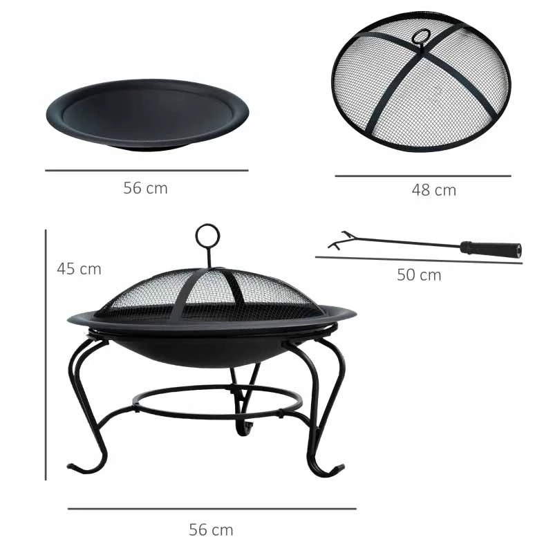 This Outsunny Steel firepit is a great addition to your outdoor living. Offers a great place to create a warm fire using wood or coal. Made from solid steel which can withstand up to 500℃ and comes with a mesh cover and a poker. A great compliment to your outliving and a perfect item to have during the cool evenings.