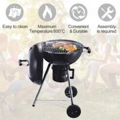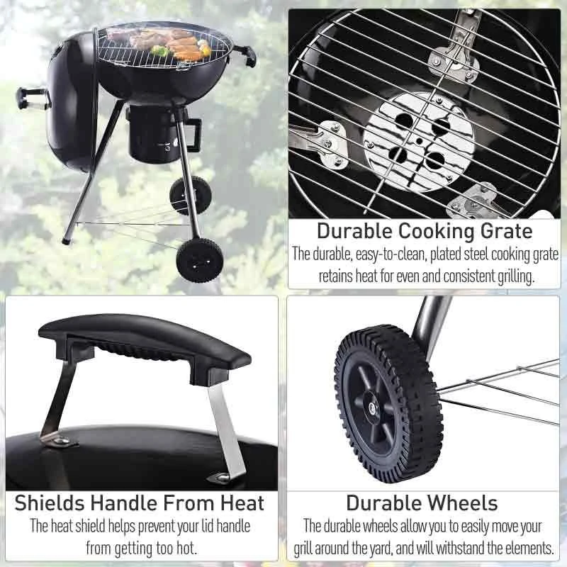 Outsunny Steel Freestanding Charcoal BBQ Grill With Two Wheels – Black – 846-045
