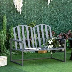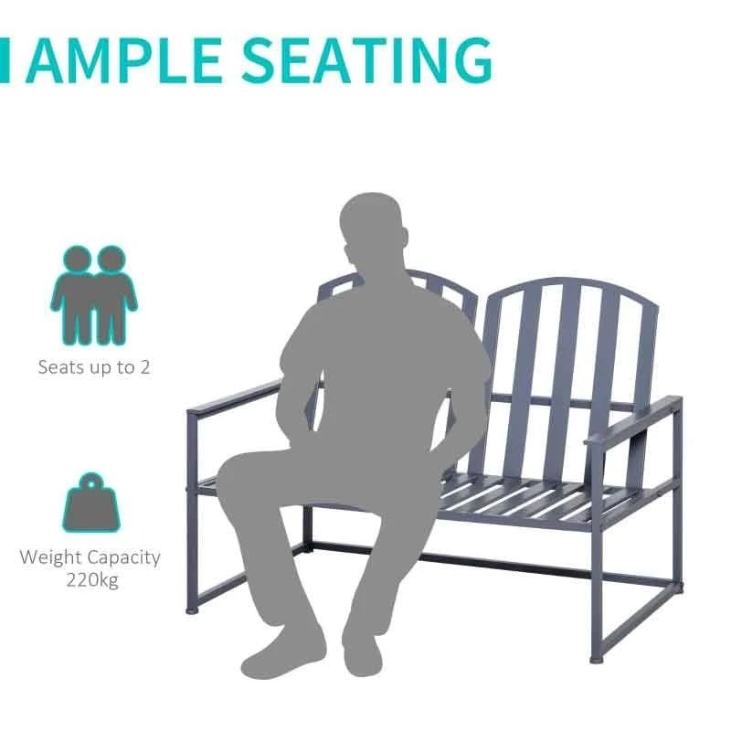 Outsunny Steel Patio Garden Bench – Grey – 84B-599GY