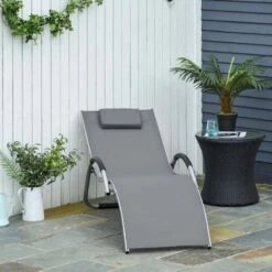 Outsunny Sun Lounger With Pillow – Grey – 84B-572V70CG