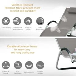 - Curved frameworks with your body’s shape for support, made from powder-coated aluminium for strength