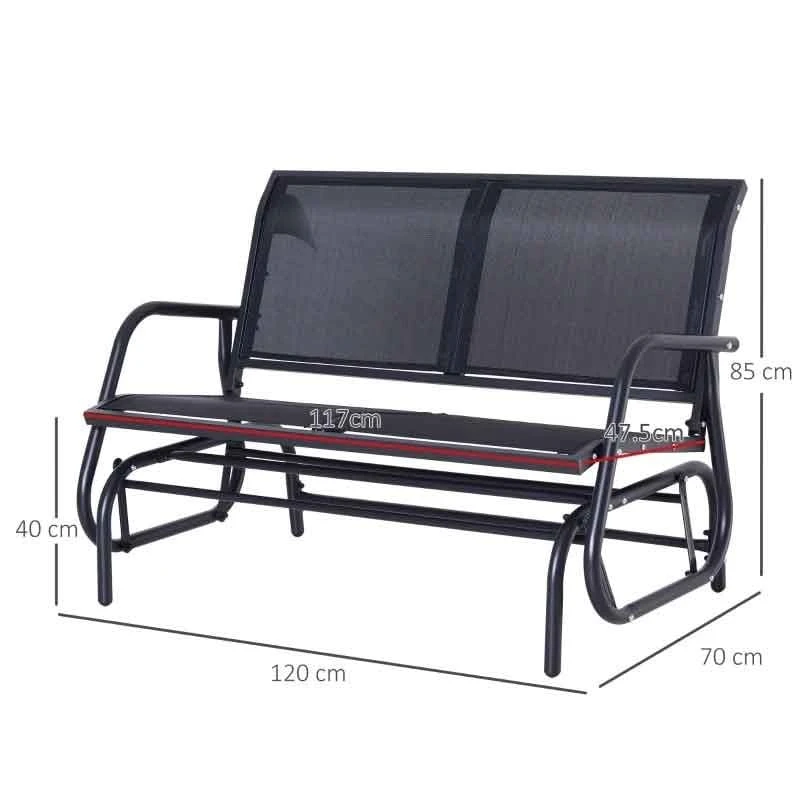 Outsunny Textilene Double Seat Garden Swing Chair – Black – 01-0893