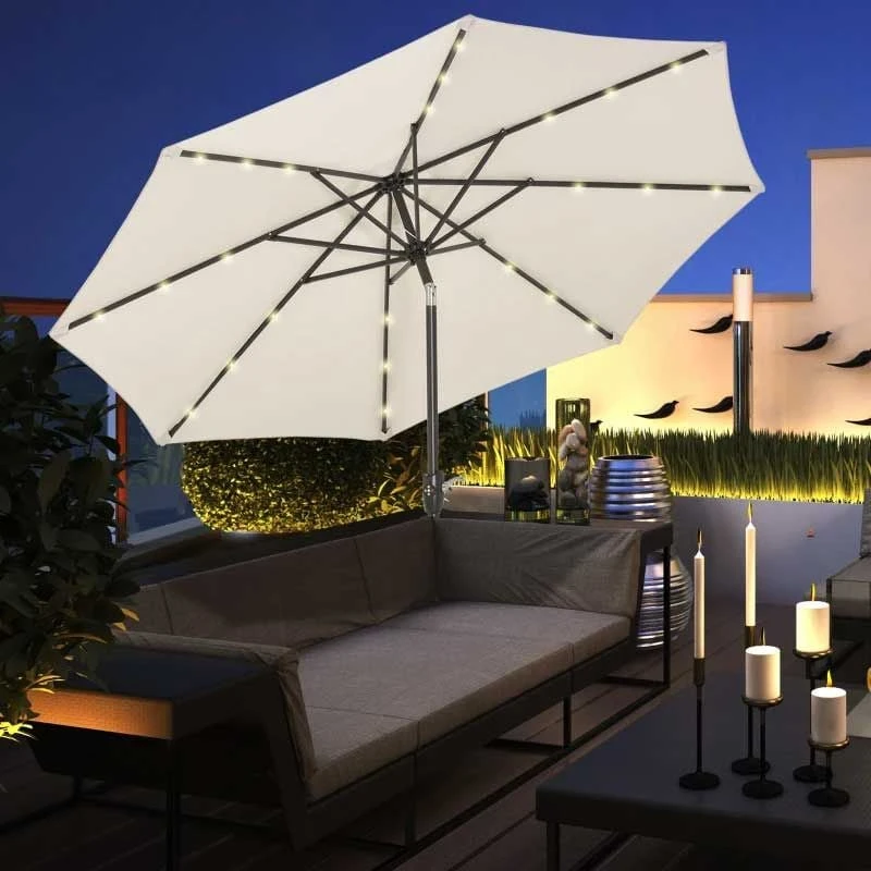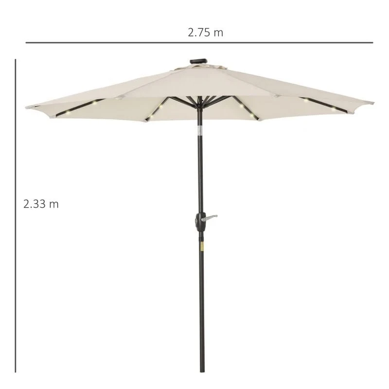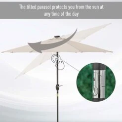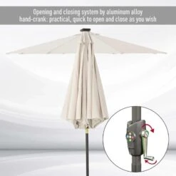 Outsunny Tilt Patio Parasol with 24 LED Light & Hand Crank – White – 840-125CW