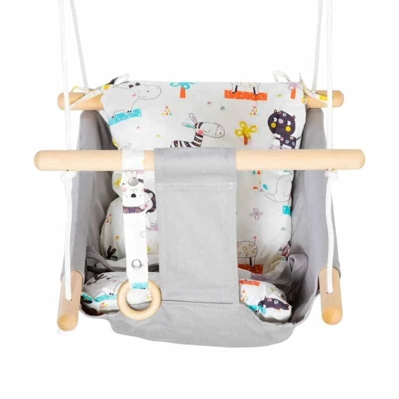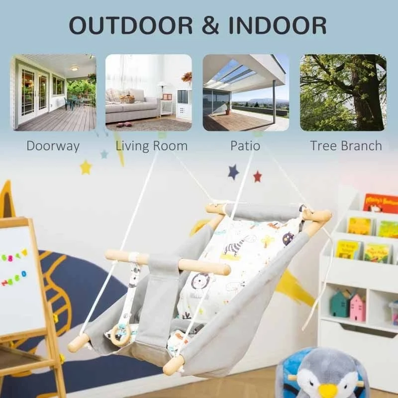 Outsunny Wooden Baby Hammock Swing with Pillow – Grey – 344-040