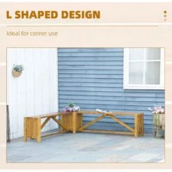 Surround yourself in nature with this beautifully designed Outsunny corner planter Garden bench. Constructed from a solid fir wood, this garden bench is durable and will last for years to come. The L shape design is unique and will slot into a corner of your garden perfectly. The slatted seat design prevents water build up prolonging the benches life span and circulates air keeping you cool on warm summer days. The small corner planter pot is a lovely feature for you to grow plants of your choice. The wide seat and added V shaped bars underneath each bench will offer added support and will keep you comfortable in your garden for hours on end.