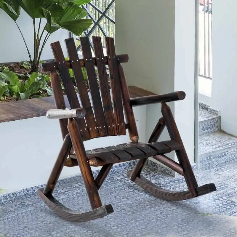 Outsunny Wooden Garden Rocking Chair-Brown-84A-065