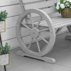 Outsunny Wooden Wagon Wheel 2-Seater Garden Bench-Grey-84B-183CG