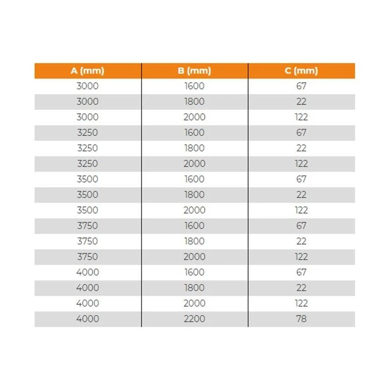 - Size: 3000 x 1600mm.