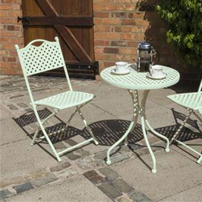 Add a beautiful and practical design into your garden with the Rowlinson Havana Bistro Set, perfect for sitting out in the garden or balcony. With an attractive table top and seats, the sage green bistro set is a comfortable feature to match the space with a neatly rounded table and foldable chairs that can be stored away when not required.