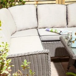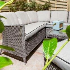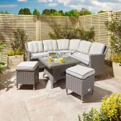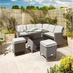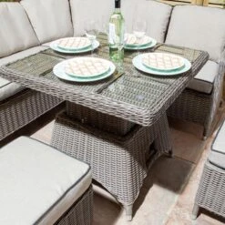 - Includes: Sofa, Stools, Table, Cushions & Seat Pads