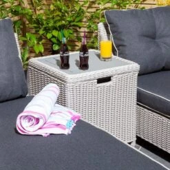 Create a contemporary space to lounge about and relax within your garden with the Rowlinson Twin Sun Loungers allowing you to enjoy the sunshine throughout the summer months, creating an al fresco spot. Manufactured from rattan weave and durable powder coated aluminium frame, the Prestbury Sun Loungers are made up of two beds with a glass top table but can be transformed to fit your needs with an option of making one large luxury day bed. With the Rowlinson Sun Loungers, you can enjoy the outdoors in ultimate comfort whether adding to your patio, decking or even indoors in a conservatory it is suitable for a range of spaces.